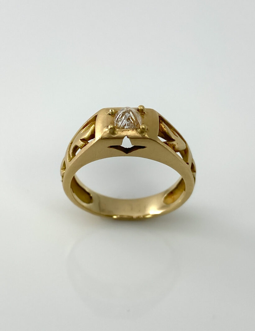 Solitario en oro amarillo mate de 18kt con diamante en bruto 0,40ct.